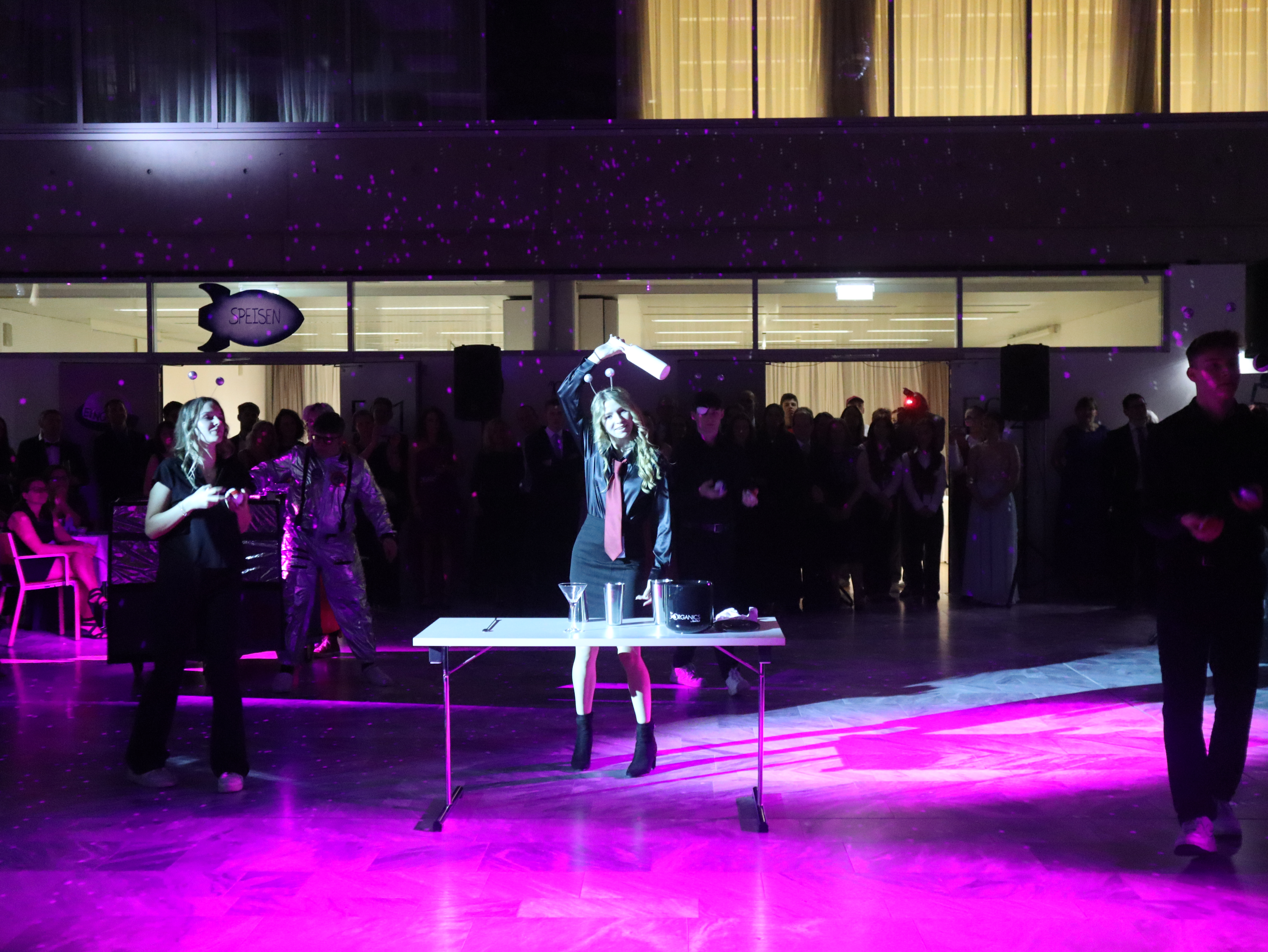 Der diesjährige HTS-Schulball war eine traumhafte Ballnacht. Das WIFI bestach mit weltraumhafter Atmosphäre und bei Bigband, gehobener Kulinarik und professionellem Service wurden die Gäste in bewährter Manier verwöhnt. Ein Lob an die beiden vierten Klassen, die alles hervorragend organisierten, an die fünften Klasse für ihre tolle Polonaise und an die dritten Klassen für ihre wertvolle Unterstützung.